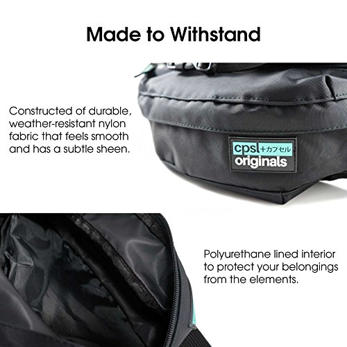 -. Feature : Modern Minimalist - Hidden pocket design epitomizes minimalist style and adds a layer of theft prevention to your valuables. / Home For Your Essentials - Easily organize and access your phone, wallet, keys, chap stick, sunglasses, snacks, and more. / Designed for Your Lifestyle - Between your daily activities to life adventures, this pack is well-equipped for urban or outdoor exploration. / Made to Withstand - Durable, weather-resistant nylon fabric feels smooth and has a subtle sheen. / Dimensions: 15.7" x 5" x 2.7", Specifications: 2 main zip compartments, 1 hidden zip pocket, clip-fastened adjustable strap up to 50"