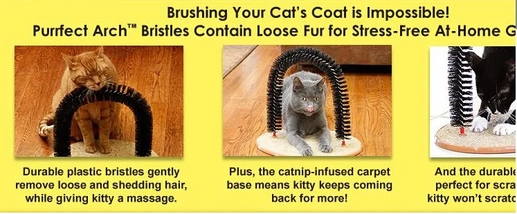 Material:PP metal Brand Name:KIMHOME PET Model Number:PH35 Material:PP metal Fit:Cats Toys Type:Catnip Toys Pet toys:purrfect arch for cat Base Size:36cm x 28.5cm x 1cm Arch Height:35cm Feature1:Durable bristles Feature2:Stimulate your cat with a massage