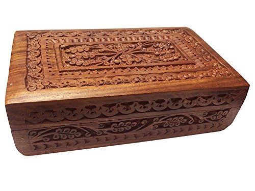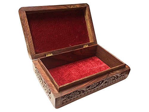 Valentine Day Special Present, Wooden Floral Carvings Jewellery Box, Trinket Box, Multipurpose Keepsake Storage Box, Earring Box, Vintage Box, Brown Color Size 8 X 5 Inch