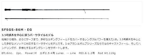 원본상품명: アングラ?ズリパブリック(ANGLERS REPUBLIC) パ?ムス エルア ショアガンエボルブ エギングモデルSFSGS?86M EG. SFSGS?86M EG