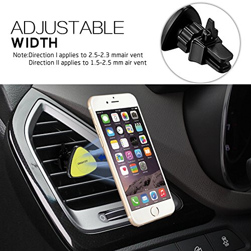 -. Binding : Wireless Phone Accessory -. Brand : Omaker -. Color : Black -. EAN : 0799637002517 -. Feature : Super Steady: The reinforced magnetic car mount holder that will hold your device steady as long as the weight of your device is under 250g. / Adjustable Width: DirectionⅠis looser from 2.5mm to 3.5mm; directionⅡis tighter from 1.5mm to 2.5mm. / 360 Degree Rotation: The rotatable holder lets you find the perfect angle to view your smartphone at a quick glance. / Washable: The underside of the circle metal plate' PU adhesive side is reusable and washable. / Ease to Use: No tools needed, just put the rectangle plate between your phone and case, or stick circle metal plate on case or phone. -. Label : Omaker -. Manufacturer : Omaker -. Model : A4131 -. PackageQuantity : 1 -. ProductGroup : Wireless -. ProductTypeName : WIRELESS_ACCESSORY -. Publisher : Omaker -. Studio : Omaker -. Title : Omaker Magic Air Vent One Step Mounting Magnetic Car Mount Holder -. UPC : 799637002517