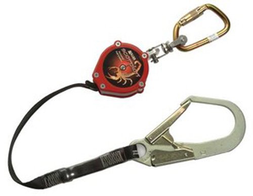 -. Feature : Scorpion personal fall limiter with locking rebar swivel hook, carabiner and swivel shackle / Attach directly to the harness D-ring for use as a personal fall limiter or use as a traditional retractable lifeline / Small, lightweight design 2.9-pounds / Quick-activating, high-strength stainless steel braking system arrests free falls / Meets all applicable OSHA, ANSI and CSA standards