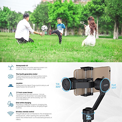 Zhiyun - Z1-Smooth-II 2 3 Axis Brushless Handheld Camera Gimbal Stabilizer APP Bluetooth Control Camera Focus Function for Smartphone Apple iPhone Samsung Galaxy S7 S6 edge IOS Android