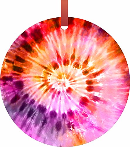 Jacks Outlet Tie Dye Flat Aluminum Semi - Gloss Hanging Holiday Tree Ornament, Round, Pink/Purple/Orange