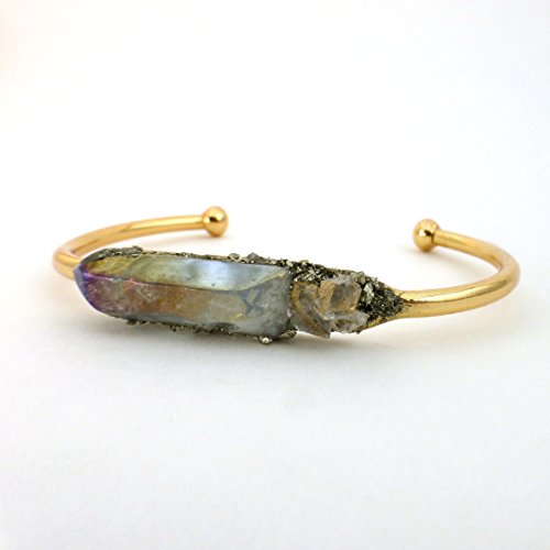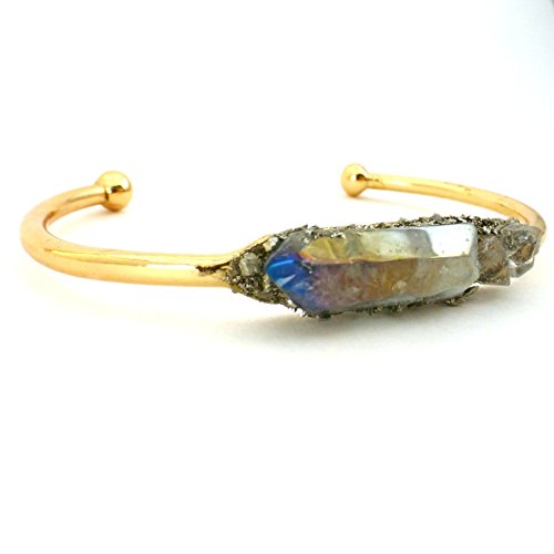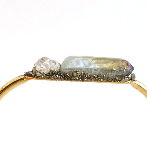 -. Title : Raw Crystal Herkimer Diamond Gold Cuff Bracelet