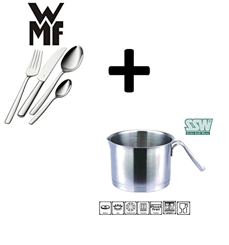 -. Feature : 1 x WMF 1272006043 Besteck Set 24-teilig Palma / Spülmaschinengeeignet / 1 x Stolze Stahl Waren Edelstahl Milchtopf 1,7 Liter Serie "Profi Pearl" Ø14cm / Aus Cromargan®Edelstahl 18/10, rostfrei