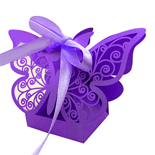 Zorpia New 50pcs Laser cut Butterfly Wedding favor box candy box gift box wedding favors event party supplies wedding decoration ZRA0168922 (Purple)