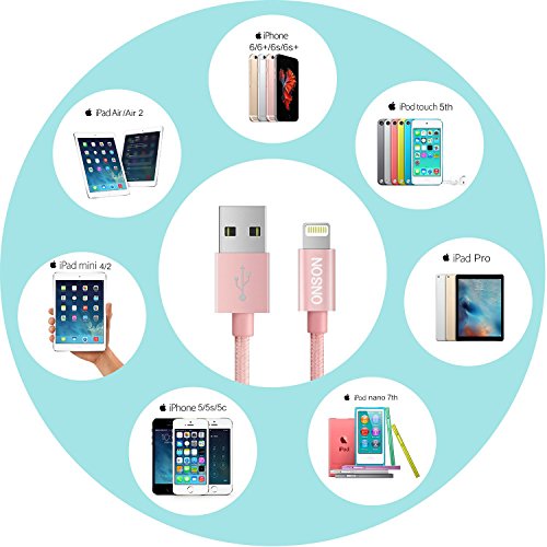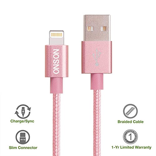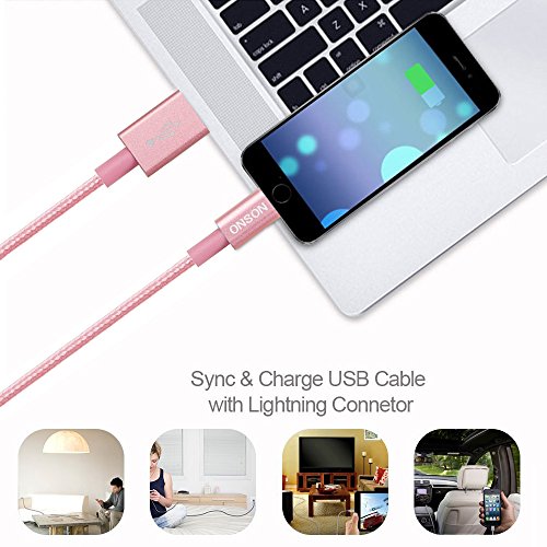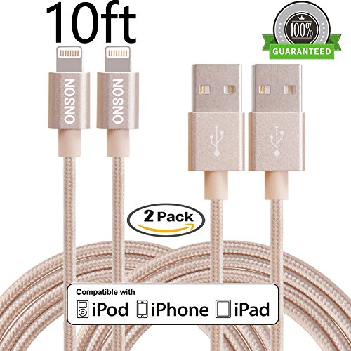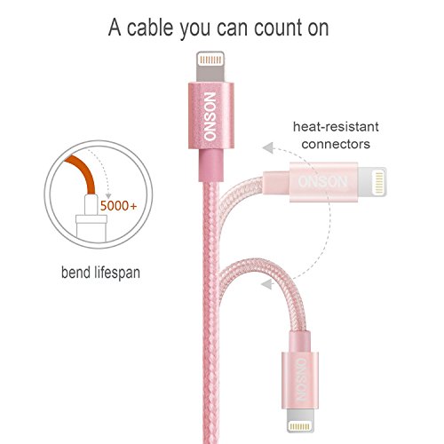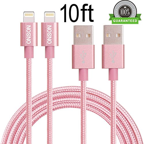 ONSON iPhone Cable,2Pack 10FT Nylon Braided Lightning Cable USB Cord Charging Cable for iPhone 6/6S/6 Plus/6S Plus,iPhone 5/5C/5S/SE,iPad 4/Mini Air and more (Rose)