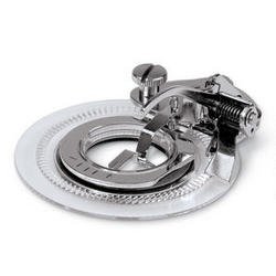 - ★ Simply attach this foot to your presser bar and needle clamp. A great way to decorate placemats, towels, button covers, soft jewelry, and cuffs. Expand flower designs by adjusting the needle position or using different decorative zigzag stitches.