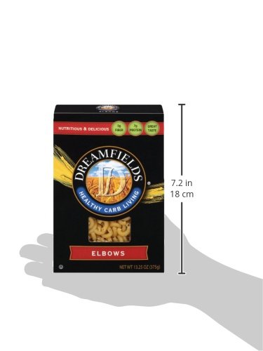 -. Binding : Grocery -. Brand : Dreamfields -. EAN : 0767387034096 -. Feature : Dreamfields has 5 grams of fiber and 7 grams of plant protein per serving / Dreamfields Helps you feel full with a balance of fibers and plant proteins / Dreamfields contains a Prebiotic fiber which helps promote healthy digestion / Dreamfields has all of the Taste and texture of traditional pasta -. Label : Dreamfields Pasta -. Manufacturer : Dreamfields Pasta -. Model : 76738703409 -. MPN : 1555 -. NumberOfItems : 6 -. PackageQuantity : 6 -. PartNumber : 1555 -. ProductGroup : Grocery -. ProductTypeName : GROCERY -. Publisher : Dreamfields Pasta -. Size : 1 13.25 oz Carton of Pasta -. Studio : Dreamfields Pasta -. Title : Dreamfields Pasta Healthy Carb Living, Elbow Macaroni, 13.25-Ounce Boxes (Pack of 6) -. UPC : 767387034096