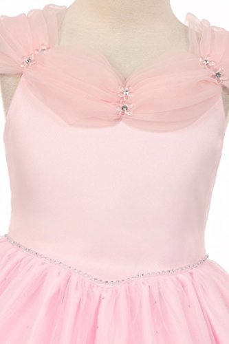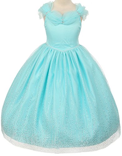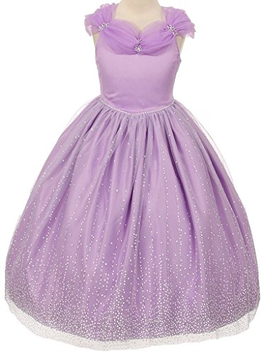 A pretty princess style dress with off-shoulder sleeves and rhinestones decorated waist line. Skirt has a sparkly tulle overlay with glued on glitters. True to size.Comes with a free gift, a matching color tiara, that will complete the princess look. An absolutely gorgeous special occasion dress for your little girl. This dress is perfect for birthday parties, fomal events, religious occasions, holidays and more.Feature