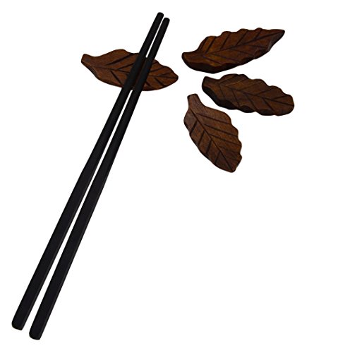 -. Brand : Thaoya -. Feature : Leaf Shape / Size:5.5*2.2cm / Set of 6 pieces is made of fine ebony Wooden / Rests prevent rolling away and give a place to set down chopsticks -. ProductGroup : Kitchen -. ProductTypeName : KITCHEN -. Title : 6 Pieces Wooden Chopsticks Rest Spoon Fork Knife Holders H269