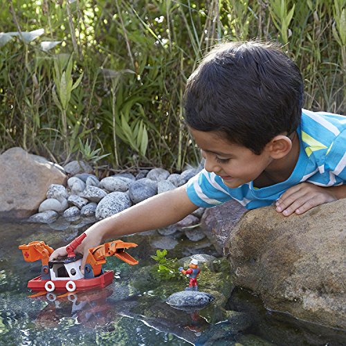 Help is on the way! The Dino Construction Company can navigate to any rescue mission by land, air, or sea! Serving up a ferocious dose of imaginative play, these daring dinos are perfect for indoor and outdoor play on dirt, sand, snow...even water! Blaze the Plesiosaurus Fire Boat puts a prehistoric twist on action-adventure imaginative play—he even floats on water! Blaze features a water spout (does not spray water); segmented, movable tail; opening jaws; tilting head; sliding neck; rolling wheels; opening cab roof; and even a Dino-man action figure.