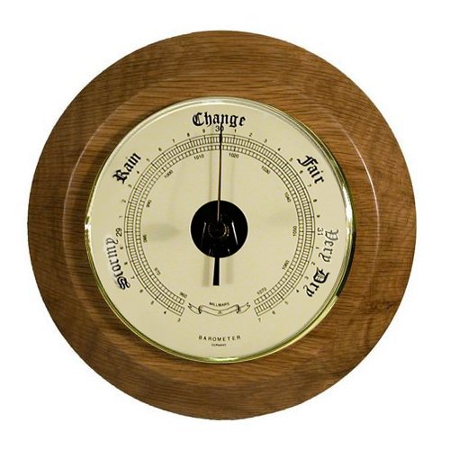 -. Brand : West and Company -. Feature : German Barometer instrument / Solid wood mount with beveled edge and convex lens dial / Forecast upcoming weather based on barometric pressure / Barometer Range: 28.3" to 31.7" hg and Elevation: 0' to 3000' / Measures 8" diameter by 1 1/2" deep -. Label : West and Company -. Manufacturer : West and Company -. MPN : 5404 -. PartNumber : 5404 -. ProductGroup : Lawn & Patio -. ProductTypeName : OUTDOOR_LIVING -. Publisher : West and Company -. Studio : West and Company -. Title : 8" Weather Barometer in Dark Oak for Elevations 0' to 3000'