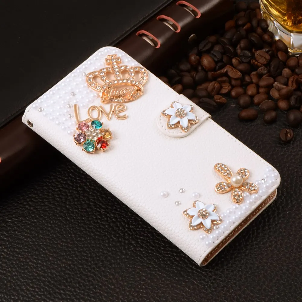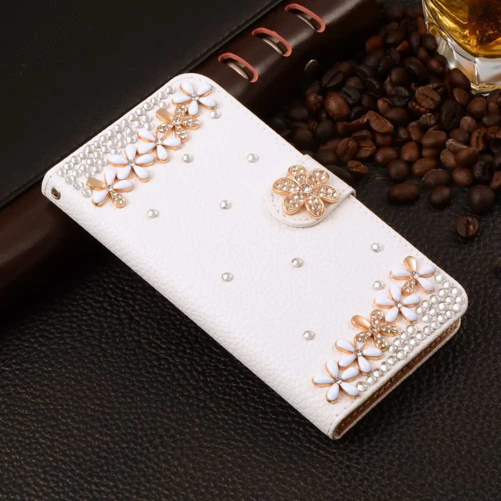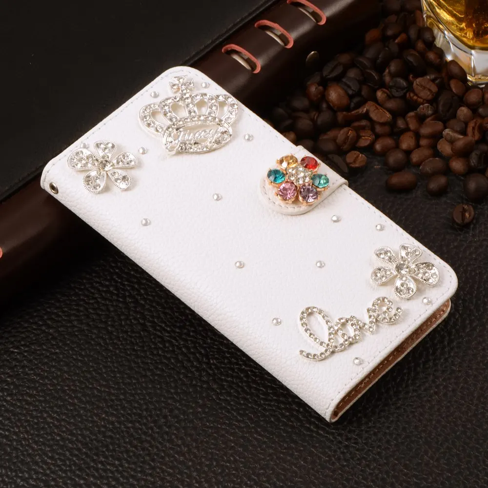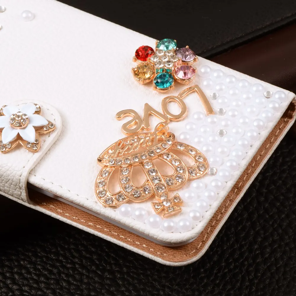 Features:Luxury Stand Flip Litchi Leather Diamond Mirror Bowknot Flower Wallet