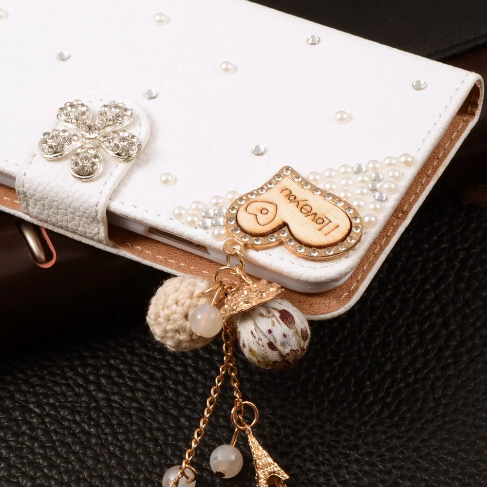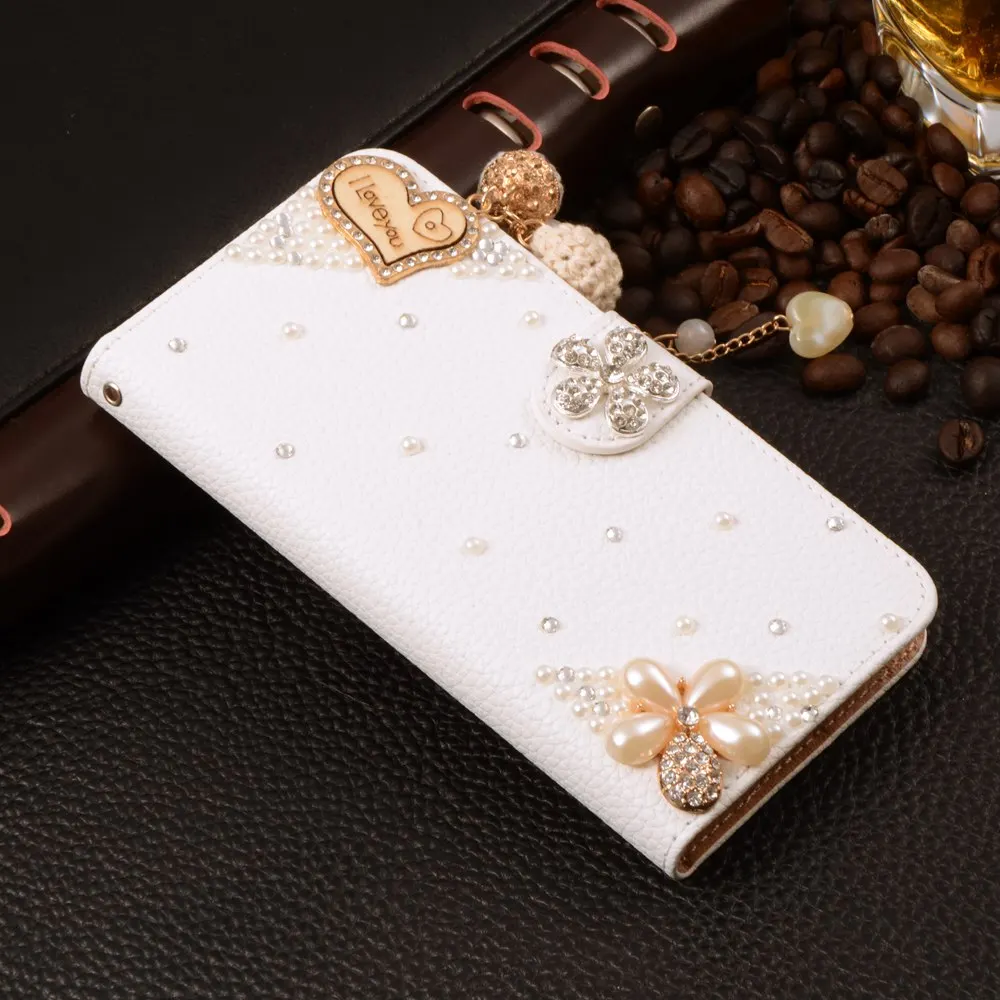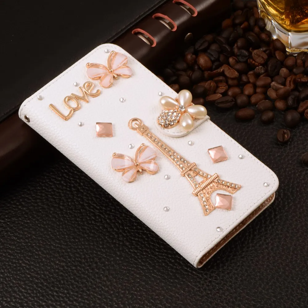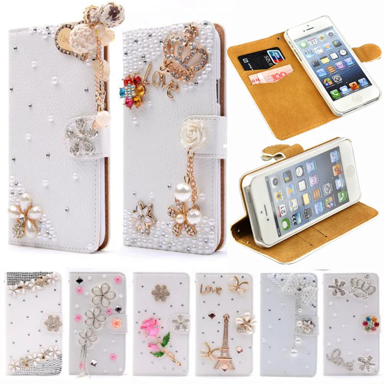 Features:Luxury Stand Flip Litchi Leather Diamond Mirror Bowknot Flower Wallet
