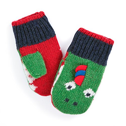 Binding : Apparel Product Description Our Dinosaur Mittens are a fun way to keep little hands snug on cold days. A friendly dinosaur is knitted to the top, with little spikes attached. Rib cuffs ensure the mittens stay on, while the flexible fit means they're comfy to wear. 0