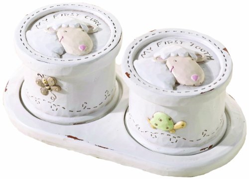 Lillian Rose Keepsake Tooth and Curl Box, Little Lamb, 5.5" x 1.75"