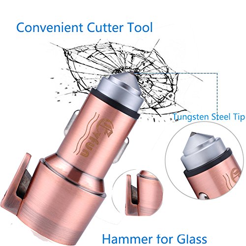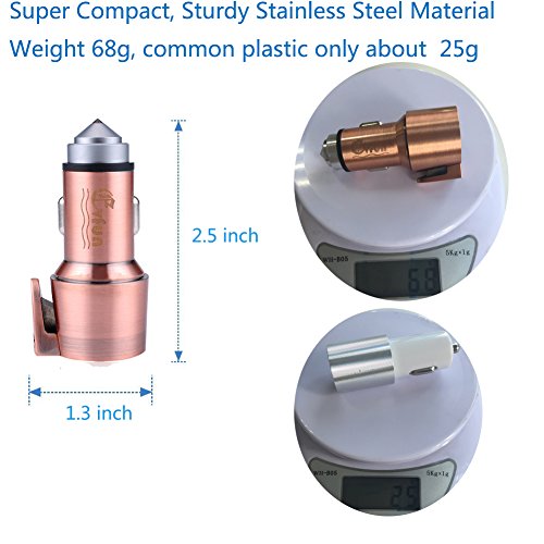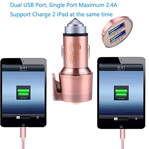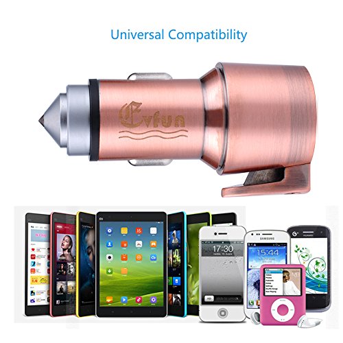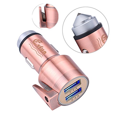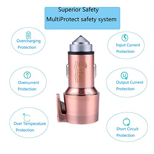 Evfun Multi-function Car Charger 4.8A/24W with Hammer Cutter for Emergency Dual Port USB Stainless Steel High Speed Car Charging Adapter for iPhone 7 / 6s / Plus, iPad Pro, Galaxy