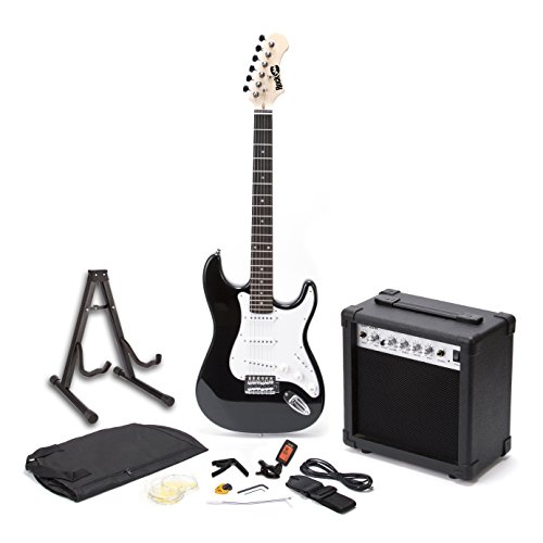 Studio : PDT Ltd - IMPORT FOB (UK) Publisher : PDT Ltd - IMPORT FOB (UK) Binding : Electronics Product Description The RockJam Electric Guitar Super Kit is the ideal affordable musical package for children and adults who want to start learning how to play the electric guitar right when they open the box. The standard electric guitar can play a variety of distinct tones making it great for musicians that want to play light rock, heavy metal, or anything in between. With a five-way pickup selector switch, three single coil pickups, one volume, and two tone controls, you’ll be able to find your perfect sound. The 20 watt RMS amplifier blasts your music from the electric guitar. Use it at home to practice to yourself or show off what you’ve learned and play in front of others. The amp has multiple sound settings including bass, middle, and treble. Connect the amp to the electric guitar with the included wire. The small and convenient guitar tuner (battery included) is a great accessory. Simply clip it on to the electric guitar so you can determine if you are playing in the correct key. The spring clamp guitar capo can change the tone of the electric guitar. Both lightweight and portable, use the guitar capo to play in different keys all while in standard tuning. Easily travel with the guitar bag that keeps your guitar safe and clean. The guitar picks will also help ensure that you can play for hours without putting strain on your fingers. The extra guitar strings will make life easier in case one of the strings just happens to break from you playing too much. With everything necessary included, the RockJam Electric Guitar Super Kit is a wonderful gift to buy for yourself, your kids, or even your grandchildren. 0