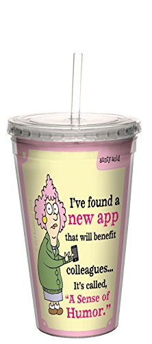 Tree-Free Greetings 16-Ounce Double-Walled Cool Cup with Reusable Straw, Aunty Acid Sense Of Humor (CC98627)