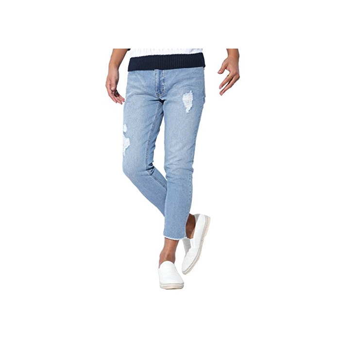 LUXSTYLE 【 데미지 컷 오프 리페아 스트레치 엉클 데님 팬츠 】 스키니 진즈