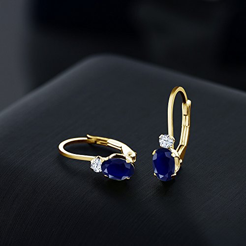 -. Title : 1.18 Ct Oval Blue Sapphire White Created Sapphire 14K Yellow Gold Earrings