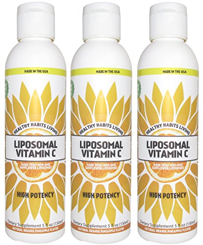 Healthy Habits Living Liposomal Vitamin C - 150ml (5 fl oz) - Natural Orange Pineapple Flavor - 30 Servings - 1,000 mg per serving - 100% Bio-Available - Fast Absorption - High Potency - Vegan - Non GMO Certified Liposomes - Made in the USA - Certified cGMP. Why liposomal? Sunflower Lipsomal Vitamin C offers higher absorption than traditional Vitamin C supplements. This route is easier on your digestive tract and much more convenient than injectable or IV Vitamin C. We combine our Vitamin C with Non-GMO Sunflower Liposomes to avoid the unwanted side-effects of genetically modified soy products. What are sunflower liposomes? Liposomes are "nano-sized" units that transport nutrients through cell walls. We utilize Non-Gmo Sunflower liposomes to enhance the absorption of Vitamin C. We packaged our Vitamin C in liposomes so the nutrient penetrates directly into the cell instead of being flushed out through the bowels.Feature
