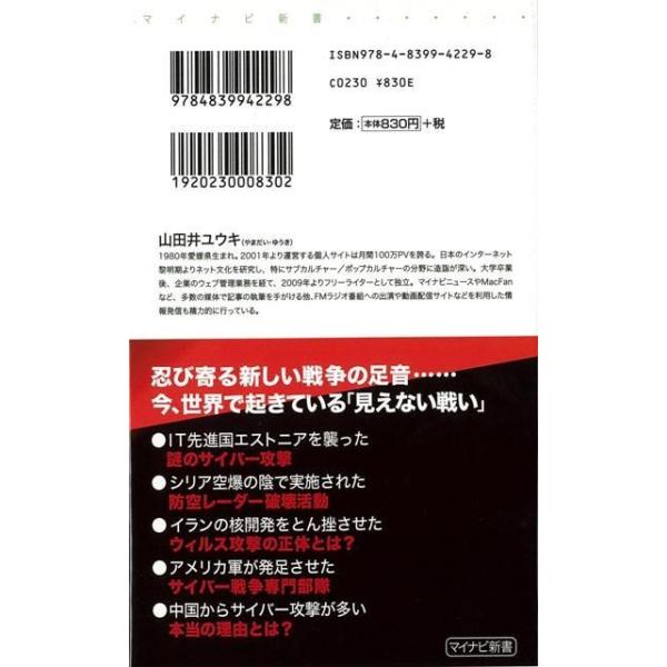 【商品基本情報】 商品名称:サイバー戦争-マイナビ新書 著者/出版社:山田井 ユウキ/山田井 ユウキ 初版発行日:2012/06/30 サイズ:新書判 ページ数:216 ISBN/JAN:9784839942298/4528189415362