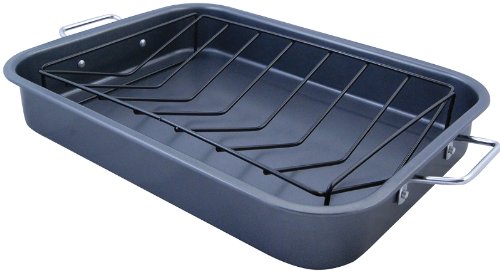 -. Feature : Ideal for roasting meats, poultry and vegetables without sticking. Durable carbon steel construction. Non-stick interior and exterior. Steel roasting rack. Fixed chrome handles.