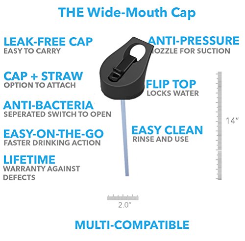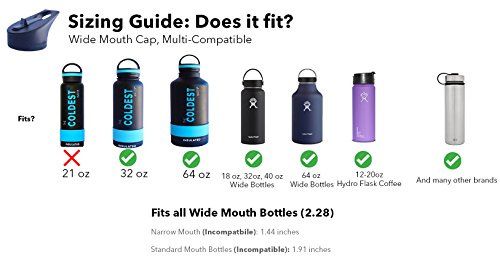 The Coldest Water Wide Size Mouth Hydro Sports Straw Cap Flip Top Lid - Multi-compatible with Wide Flask Mouth Size Stainless Steel Water Bottles