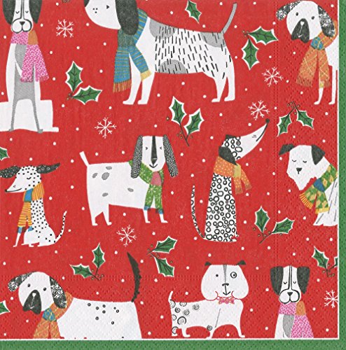 Entertaining with Caspari 14130L Christmas Canines Paper Napkins, Luncheon, Gold