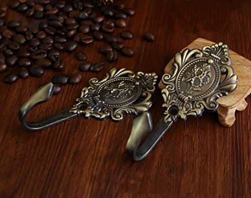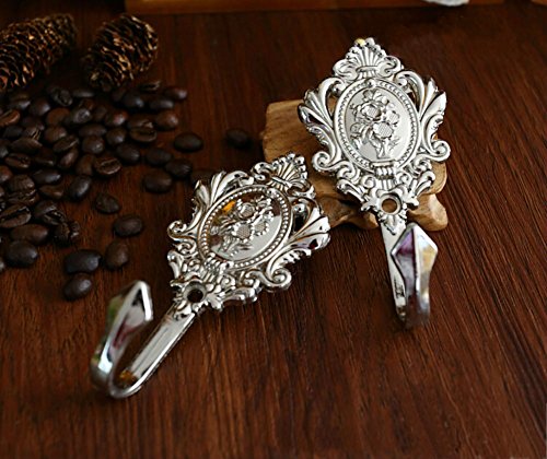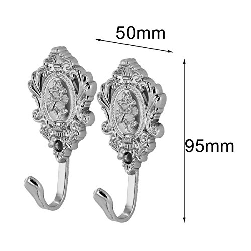 AKOAK 1 Pairs Vintage Rose Pattern Drapery Curtain Holdbacks Tieback Hooks Wall Hooks (Silvery)