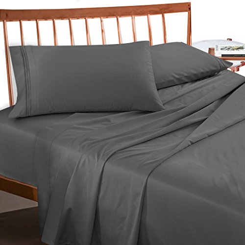 Premium Flat Sheet “110 GSM” Thick, Soft & Most Comfortable Hotel Luxury Brushed Microfiber Single Flat Bed Sheets, Queen Size, Charcoal Gray - Bedroom Essentials by Empyrean Bedding