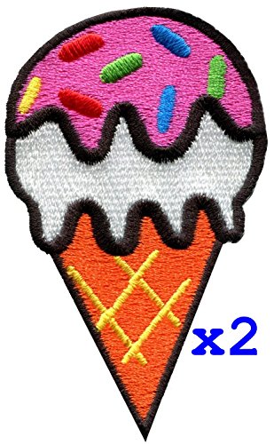Pack of 2 Ice cream cone 70s retro fun dessert sweets kids embroidered applique iron-on patch new