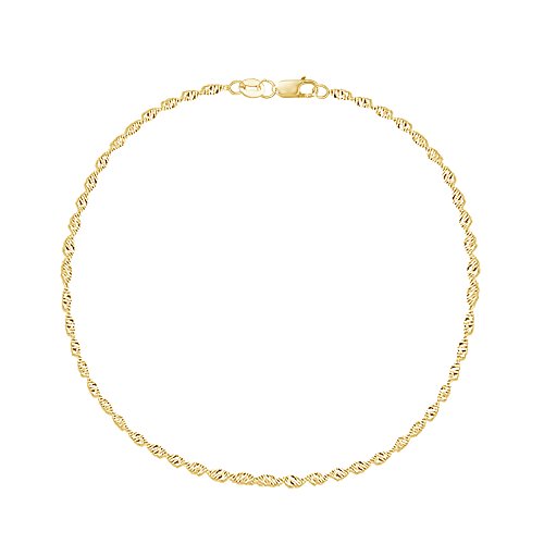 -. Feature : 14k Real Yellow Gold Singapore Sparkle Anklet Ankle Bracelet / Beautifully crafted and well designed / Size: 10 inches long and 1.5mm wide / Lobster lock clasp for comfort and security when worn / Pictures are enlarged to show details