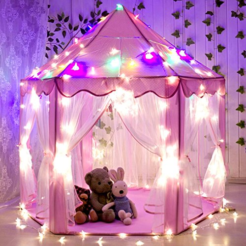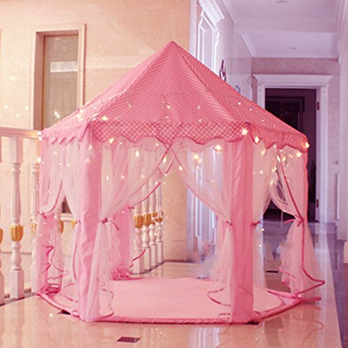 Every girl has a dream of becoming a princess,this princess castle play tent can inspire children's imaginations while giving them a private space of their own,perfect gift for girls,come with gifts:a wand and crown