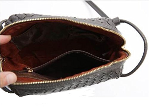 Katoony Womens Fashion PU Leisure Woven Single Shoulder Crossbody Bag Mobile Phone Bag Beach Bag with Zip