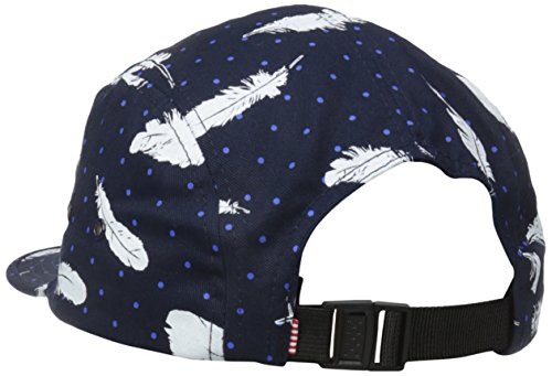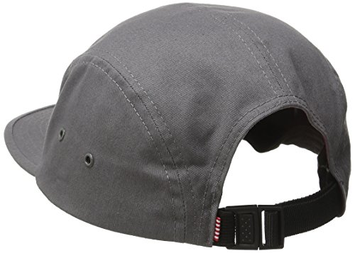 -. Feature : 100 percent cotton / Nylon webbing stretch fit strap with plastic clip fastener / Metal eyelets / Signature red and white striped front panel liner / Classic woven label