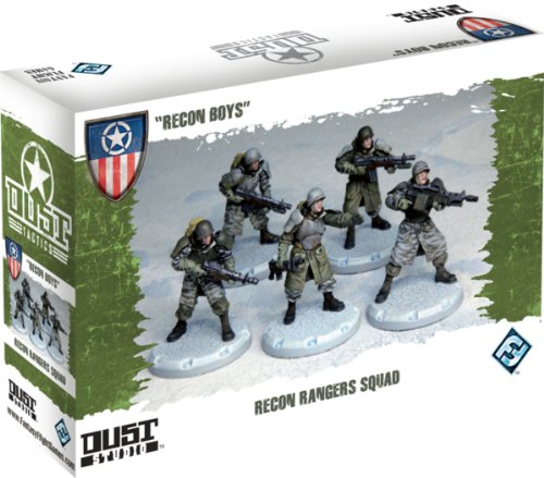 Studio : Fantasy Flight Publishing Publisher : Fantasy Flight Publishing Binding : Toy Product Description FFGDT007 Dust Tactics Recon Boys Expansion by Fantasy Flight Games Dust Tactics Recon Boys Expansion - new expansion boxes for Dust Tactics will take your game to the next level! Featuring new tactical options for your Allied and Axis armies, these primed, unpainted miniatures will expand and enhance your existing forces.For the Allies, speed and versatility mean staying one step ahead of the enemy. With the Recon Boys expansion, you can outfit your squads with the ability to adapt to nearly any threat. Recon Boys excel at their primary task: scout, infiltrate, and capture. Their speed allows them to quickly find cover or control a strategic location, which makes up for their lack of firepower. Recon Boys carry a Victory machine gun that can cut through enemy troops, but with no anti-tank armaments, beware leaving them alone against armored units. Bring these new troops to the battlefield and decide the fate of the world! 0