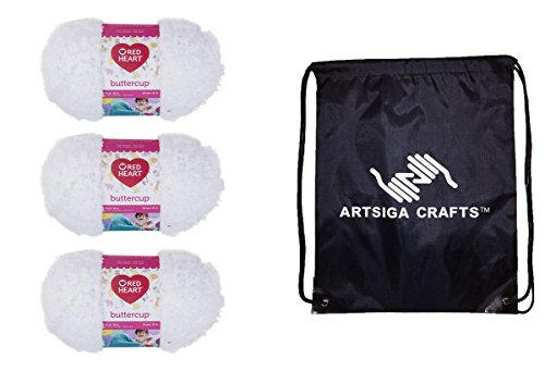 - Bundle Includes 3-Pack of Red Heart Buttercup Yarn White N396-4270 with 1 Artsiga Crafts Project Bag
