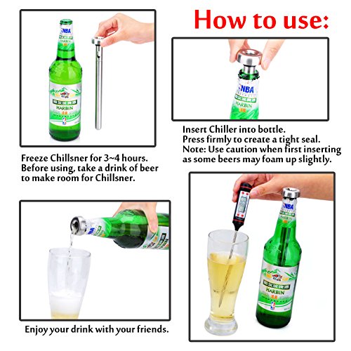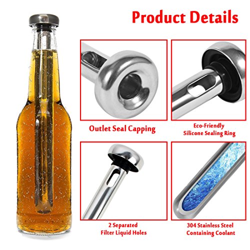 2.Better taste: The beer bottle cooler stick is designed with 2 unique holes. Enough air and right temperature make wine taste better. The wine bottle cooler stick is sealed well and you can drink directly through the chillrod