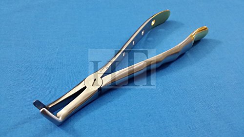 Gold Handle Premium Quality Right Angle Lower Roots Dental Extracting Forceps #45 Serrated (HTI BRAND)