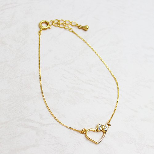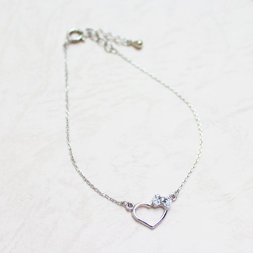원본상품명: [Jewelry Shop M]お肌に優しいニッケルフリ? 4面ダイヤカットキラキラチェ?ン ハ?ト&リボンブレスレット シルバ?(v0026-R)
