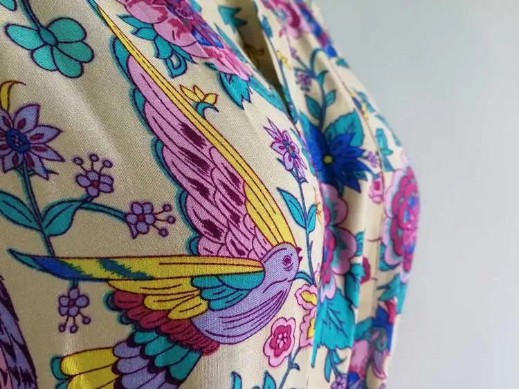 Bohemian Feature:floral prints elastic waist tassel tied