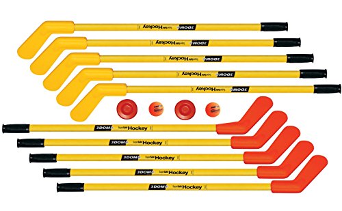 Binding : Sports Product Description DOM SuperSafe Field Hockey Stick measuring 30 in, features a traditional head design and a curved back with flat face. It provides optimum control on soft balls with the internal structure designed to keep the flat hitting surface stiff. Stick with a polyethylene shaft is oval shaped and reinforced with two structural 'I' beams, allowing for total flexibility without shaft fatigue. Stick also features an unique anti-slip butt end and it effectively places the protective padding on the stick, instead of on the legs of the players. Set intended for players up to the age of 12, includes 10 sticks and 6 DOM-83 balls. 0