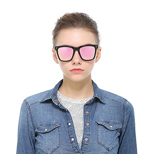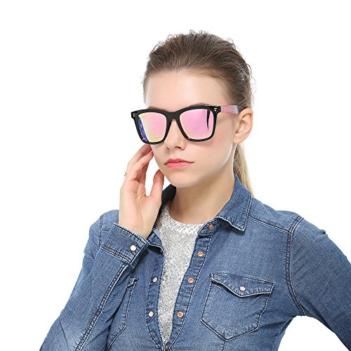 AMZTM Square Frame Reflective Mirrored Lens Polarized Women Sunglasses