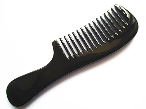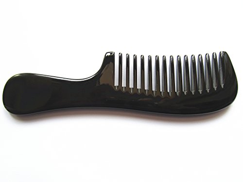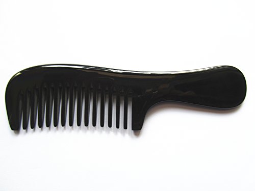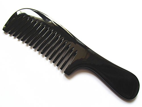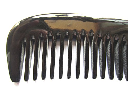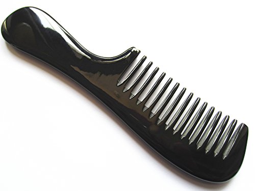Myhsmooth Bb-1w-mt Handmade No Static Big Size Round Handle Black Buffalo Horn Comb with Wide Tooth(7.9''2'')