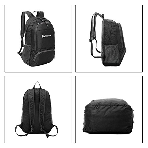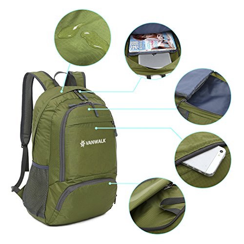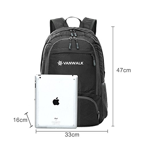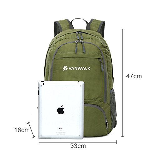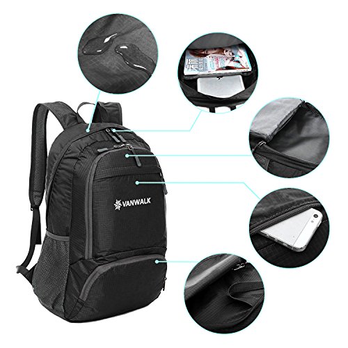 -. Brand : Vanwalk -. Feature : DURABLE. This backpack is made from highly rip and water resistant nylon fabric, provide strength and long-lasting performance with minimal weight.The strength provided by the double-layer bottom piece makes it very convenient to carry more load on your journeys. / LIGHTWEIGHT and ROOMY. A true space saver. Fold the backpack into its own pocket for storage(no more excess baggage fees),and collapsible for easy storage when not in use. Large enough to carry what you need in the trip. / COMPACT. Folds into zippered inner pocket to fit anywhere. Unfolds from pocket to backpack. Zippered interior pocket is perfect for small items. You can easily pack it in your suitcase or purse, then have an extra bag without taking up too much space. / MULTI COMPARTMENTS. This backpack features one main zipped compartment, two zipped front pockets and two side pockets. The main compartment provide enough room (35 liters) for one day trip or a week long journey. The two front pockets are good choice for storing small items. You can also put water bottle and umbrella into the two side pockets. / Ultra-light. Ultra-durable. Ultra-awesome. The backpack is perfect for day-to-day use or occasional travel, and great gift for everyone. -. IsAutographed : 0 -. IsMemorabilia : 0 -. Label : Vanwalk -. Manufacturer : Vanwalk -. MPN : bag-m -. PartNumber : bag-m -. ProductGroup : Sports -. ProductTypeName : OUTDOOR_RECREATION_PRODUCT -. Publisher : Vanwalk -. Studio : Vanwalk -. Title : Foldable Dayback/Backpack, Packable Handy Lightweight Travel Hiking Backpack Daypack + Lifetime Warranty