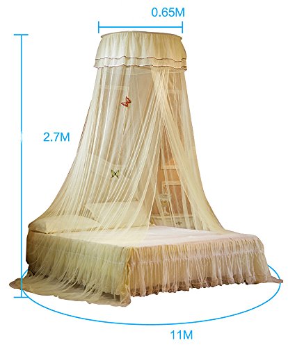 Description: - Made of polyester, features an opening for easy entrance, keeps you safe from mosquito, flies, and dirt - Easy to assemble and use, suspends from ceiling with a hook - You can hang it in a bedroom, around a cake table at an event, in a play space, as a reading nook - Size: 25.6" diameter on top, 107" high, 433" around the bottom - Perfect for covering a baby bed, queen bed or any size in between - Create a romantic atmosphere to your room. It is a great gift for newly-wed couple, or for people who live in countryside during holiday Installation: With self-adhesive hook to sticking to the ceiling and then hang the mosquito net on it Package included: 1x Mosquito netting 1x Hook 0 |
